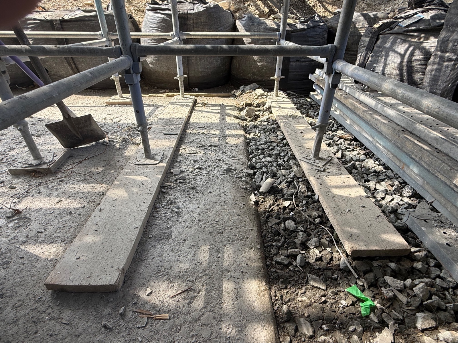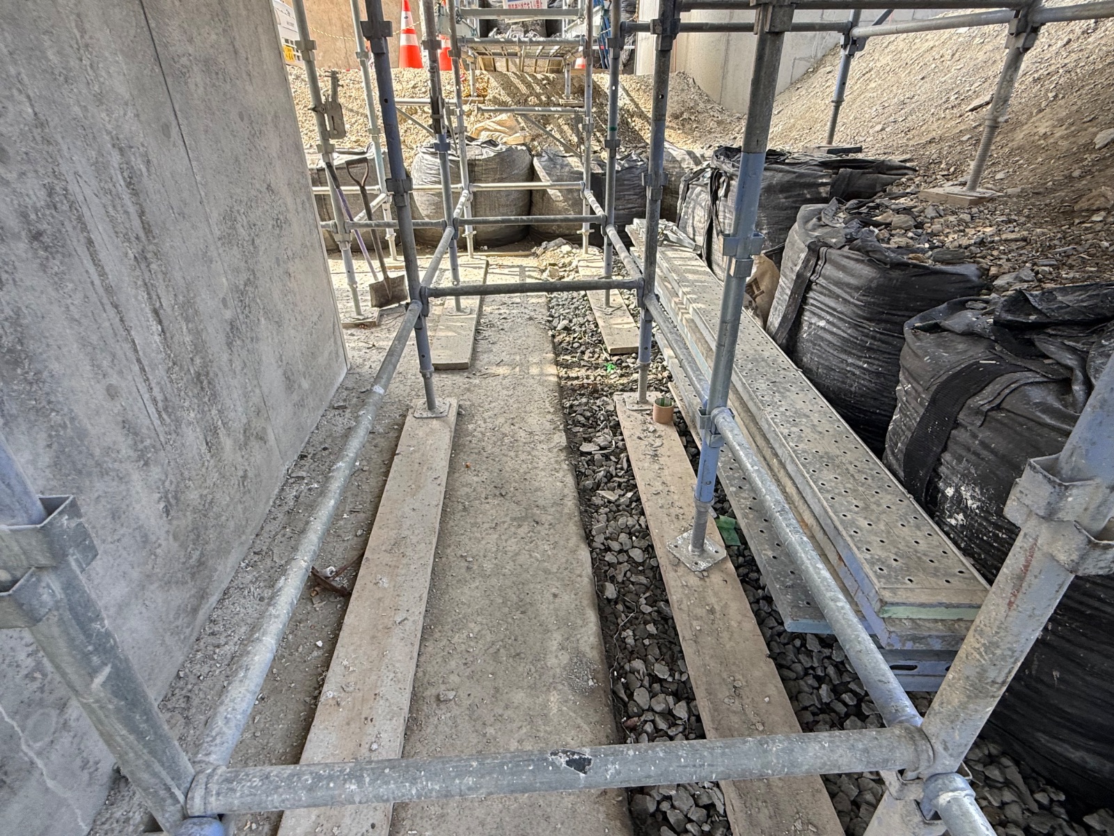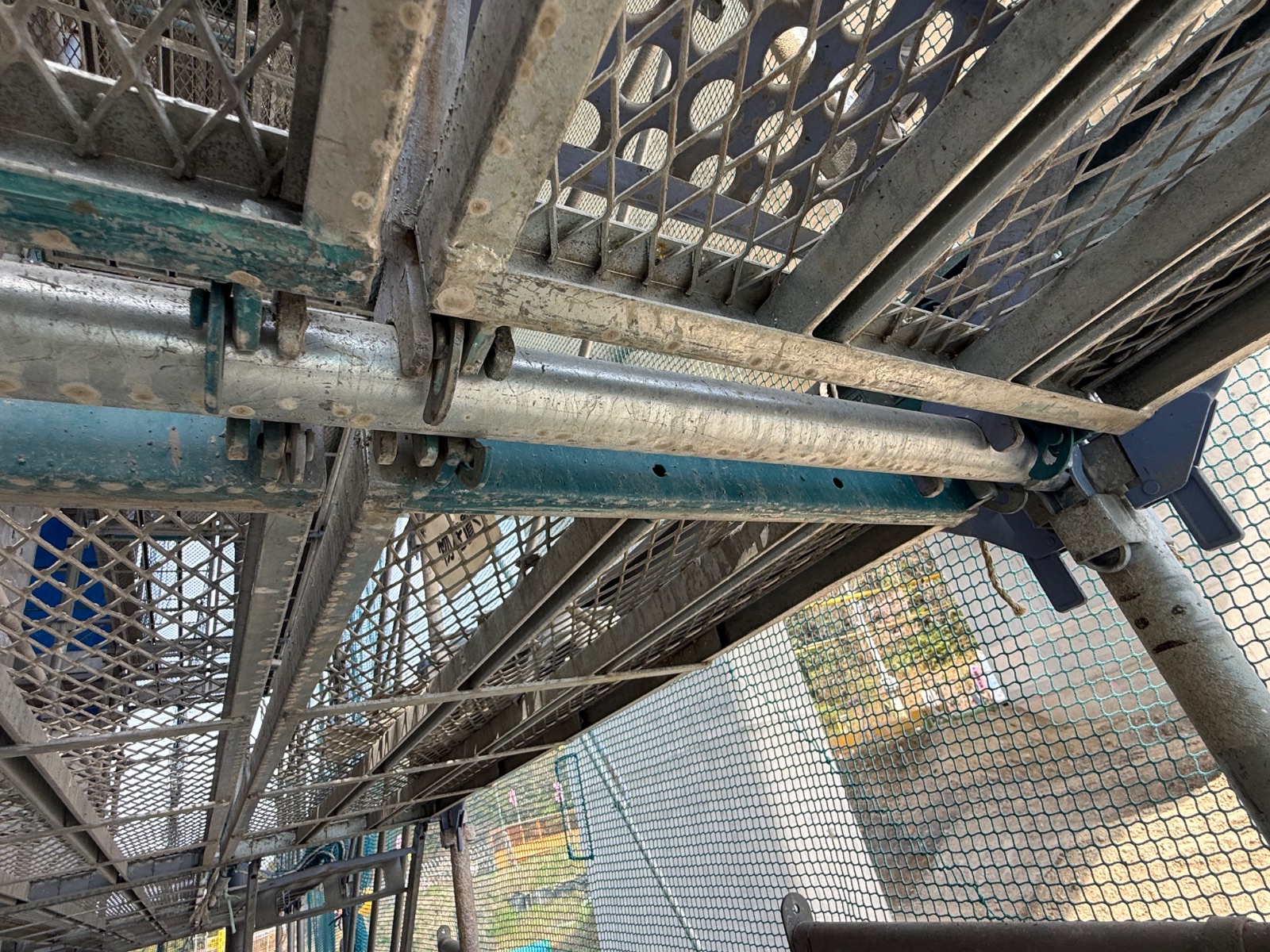 | 一部足場根がらみが外されていました。作業終了後に復旧をお願いします。 他、問題ありませんでした。 |