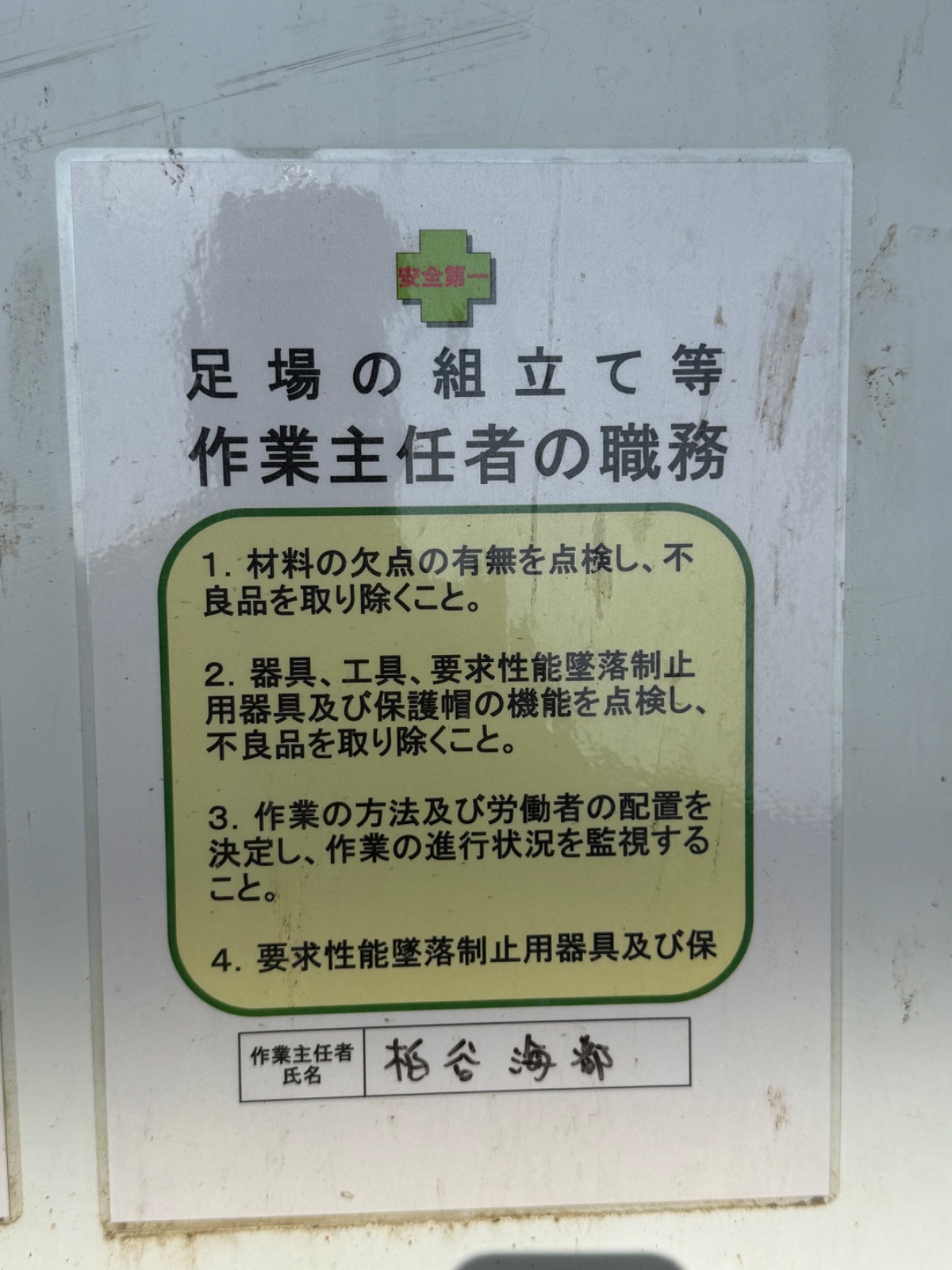 | 3 | 【足場全体】足場組立解体作業主任者名の表示はあるか | ||