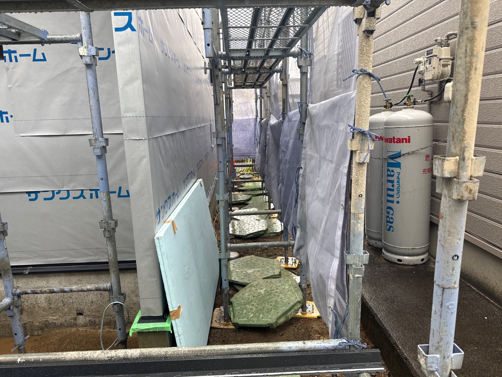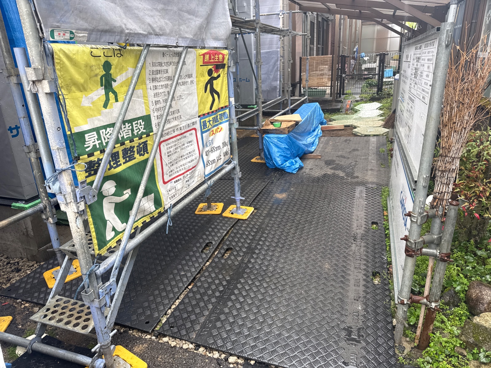 | 2 | 1m以上敷地がある場合は本足場が設置されているか | ||