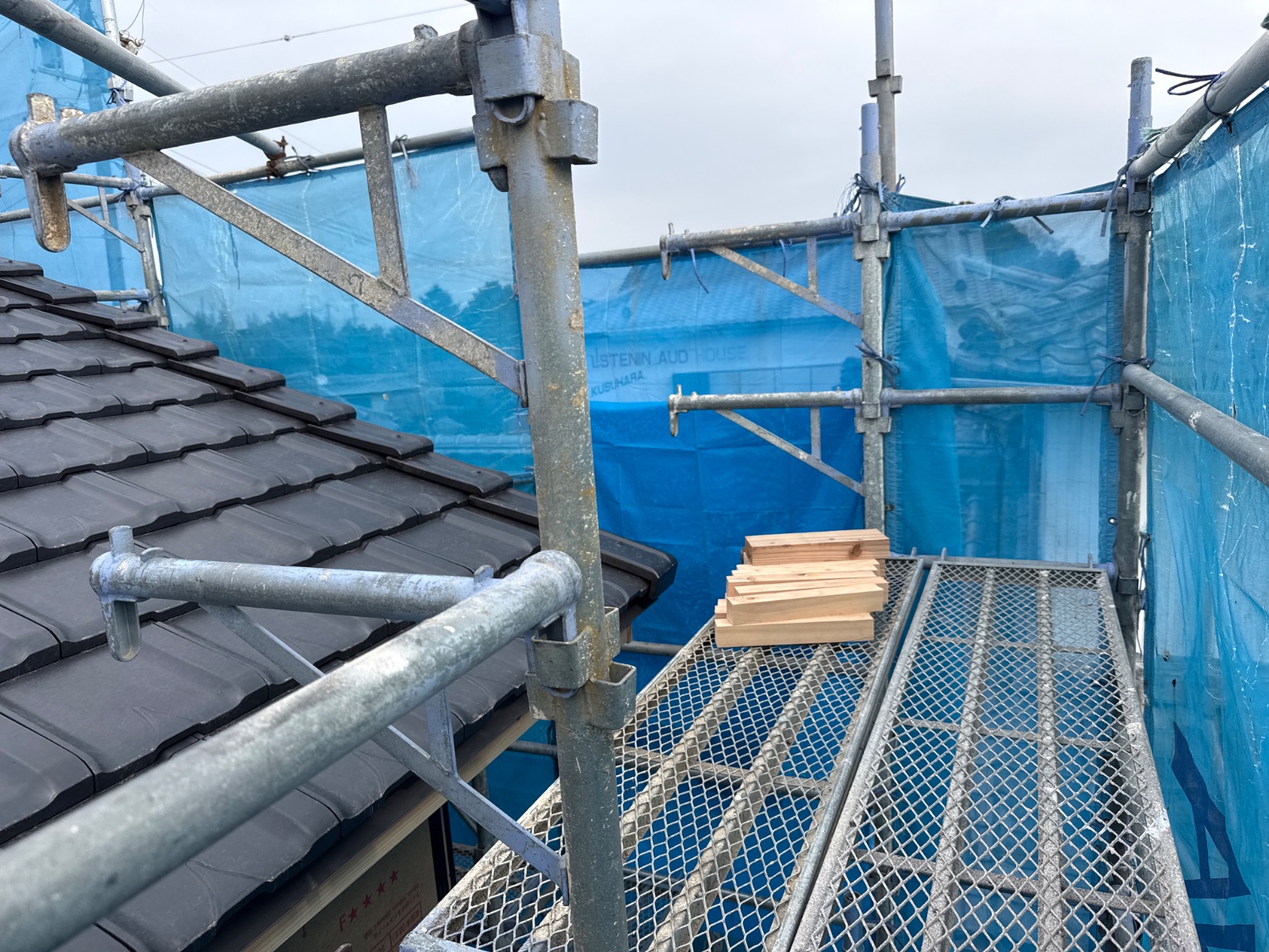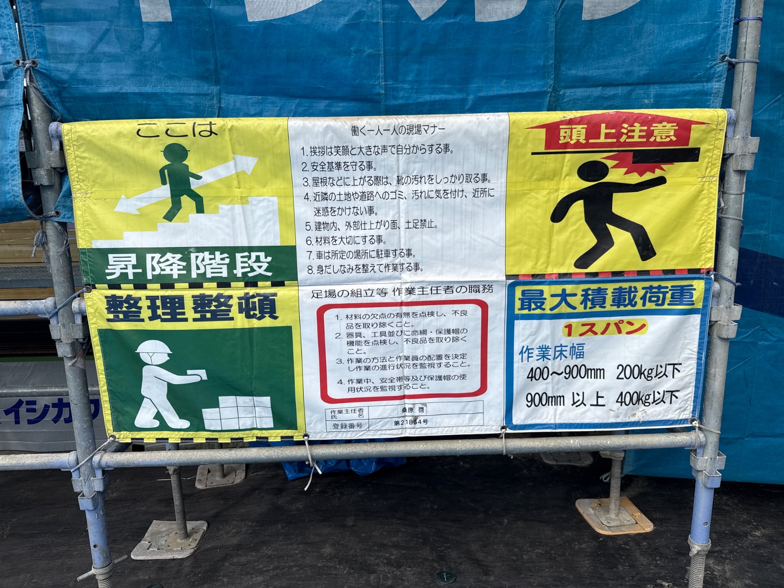 | 足場部材の一部が外されています。作業終了後に復旧をお願い致します。 |