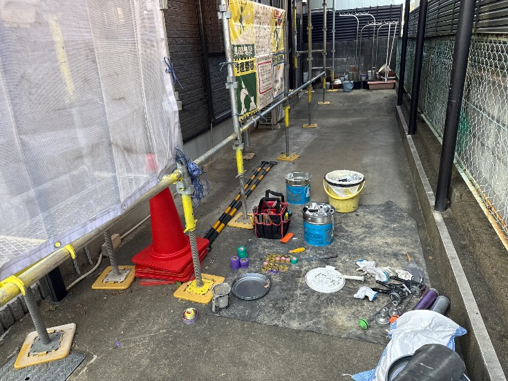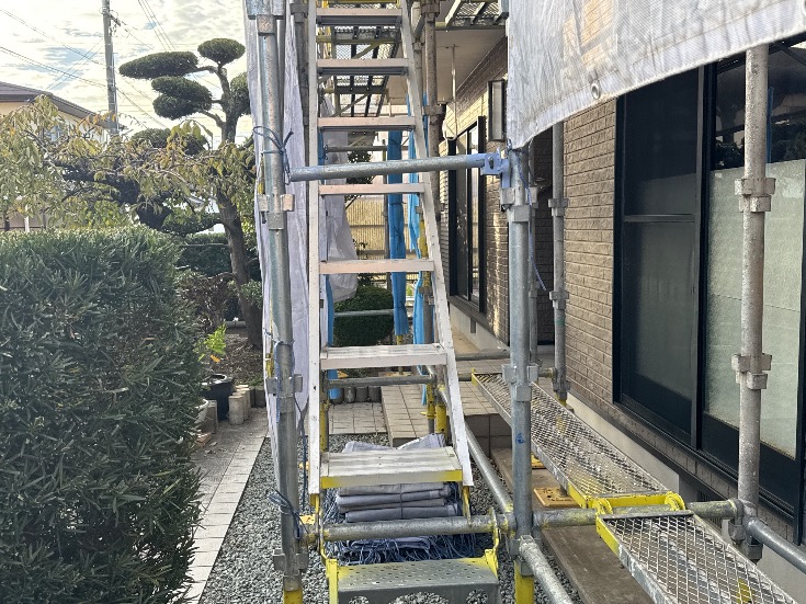 | 2 | 1m以上敷地がある場合は本足場が設置されているか | ||