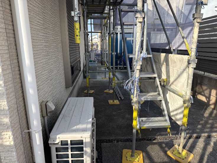 | 2 | 1m以上敷地がある場合は本足場が設置されているか | ||