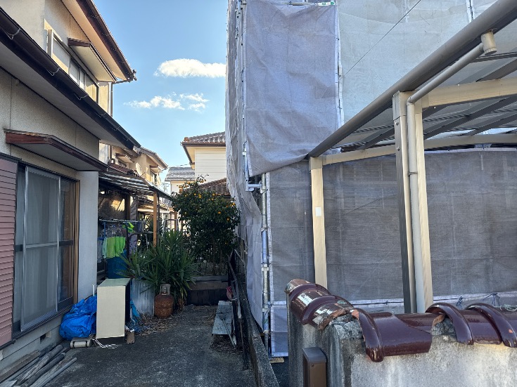| 2 | 1m以上敷地がある場合は本足場が設置されているか | ||