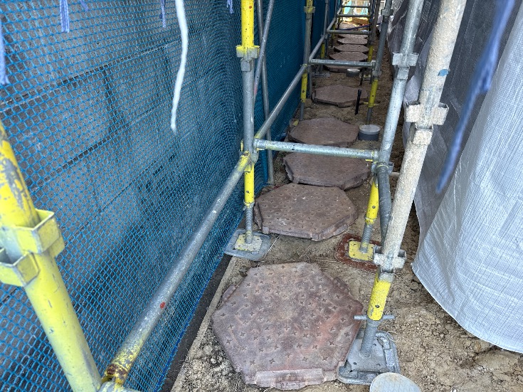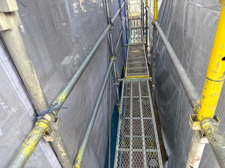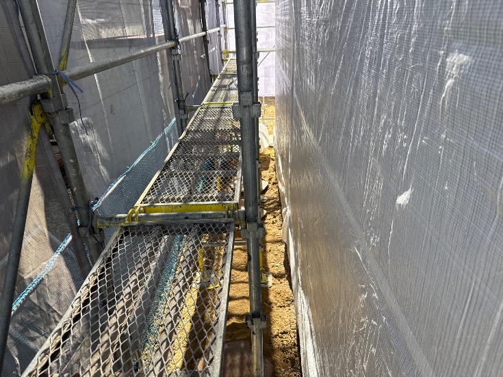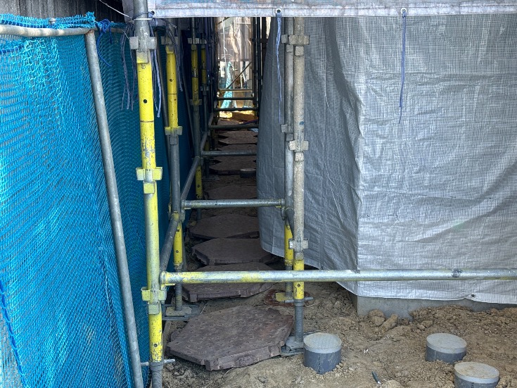 | 2 | 1m以上敷地がある場合は本足場が設置されているか | ||