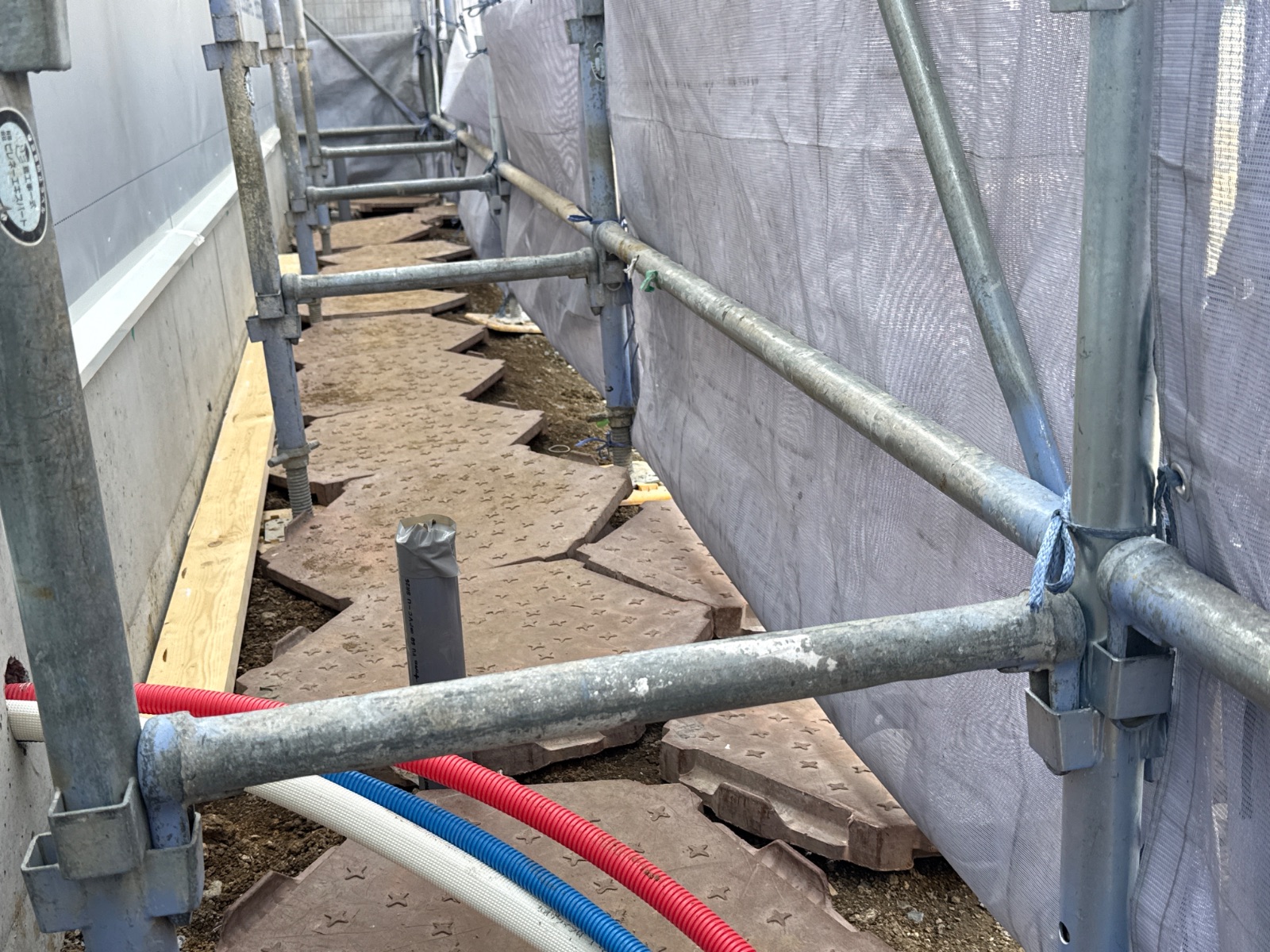 | 2 | 1m以上敷地がある場合は本足場が設置されているか | ||