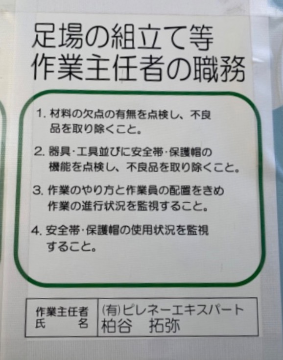 | 3 | 【足場全体】足場組立解体作業主任者名の表示はあるか | ||