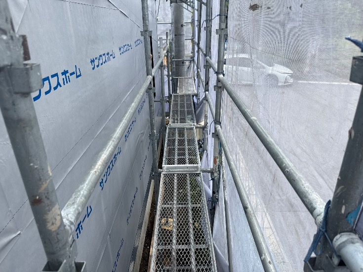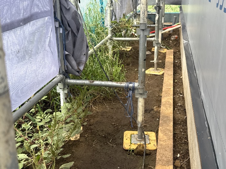 足場の根がらみ部材が外されたままになってます。作業終了後に復旧をお願い致します。 他、問題ありませんでした。 |