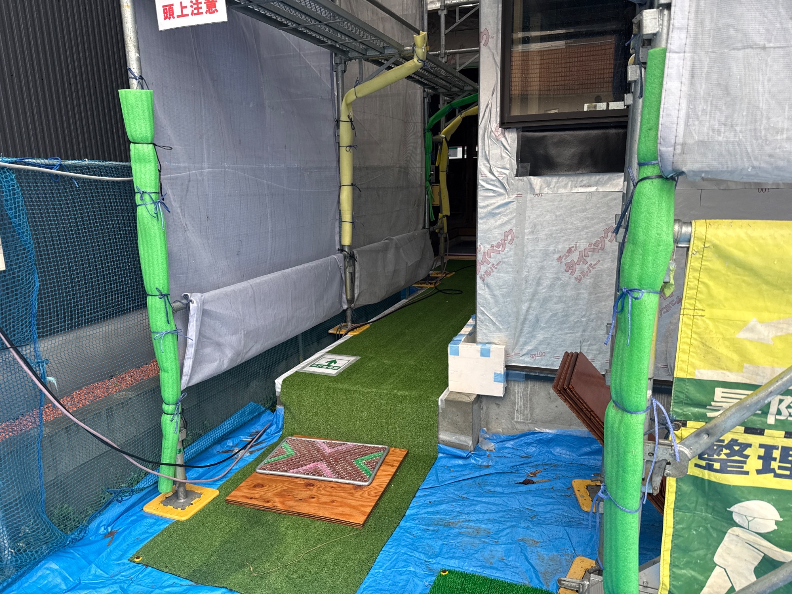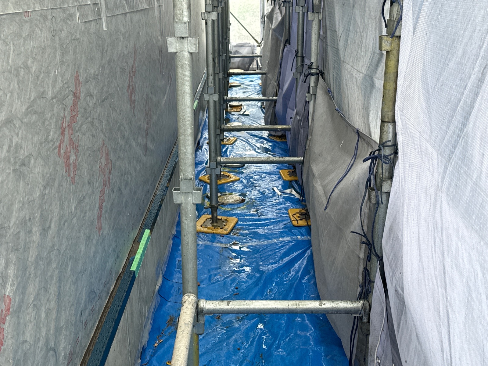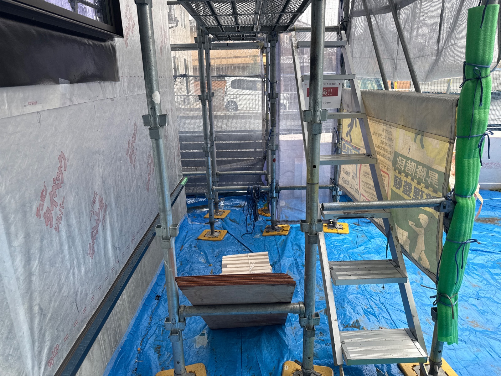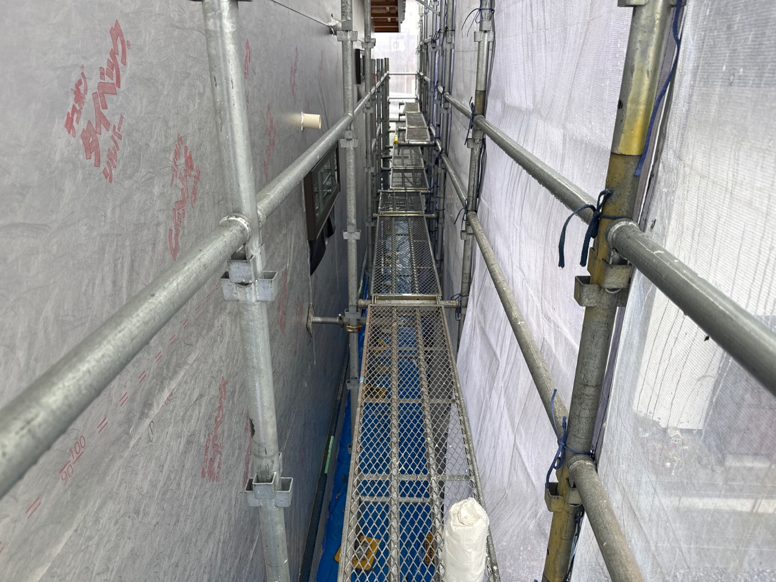 | 2 | 1m以上敷地がある場合は本足場が設置されているか | ||