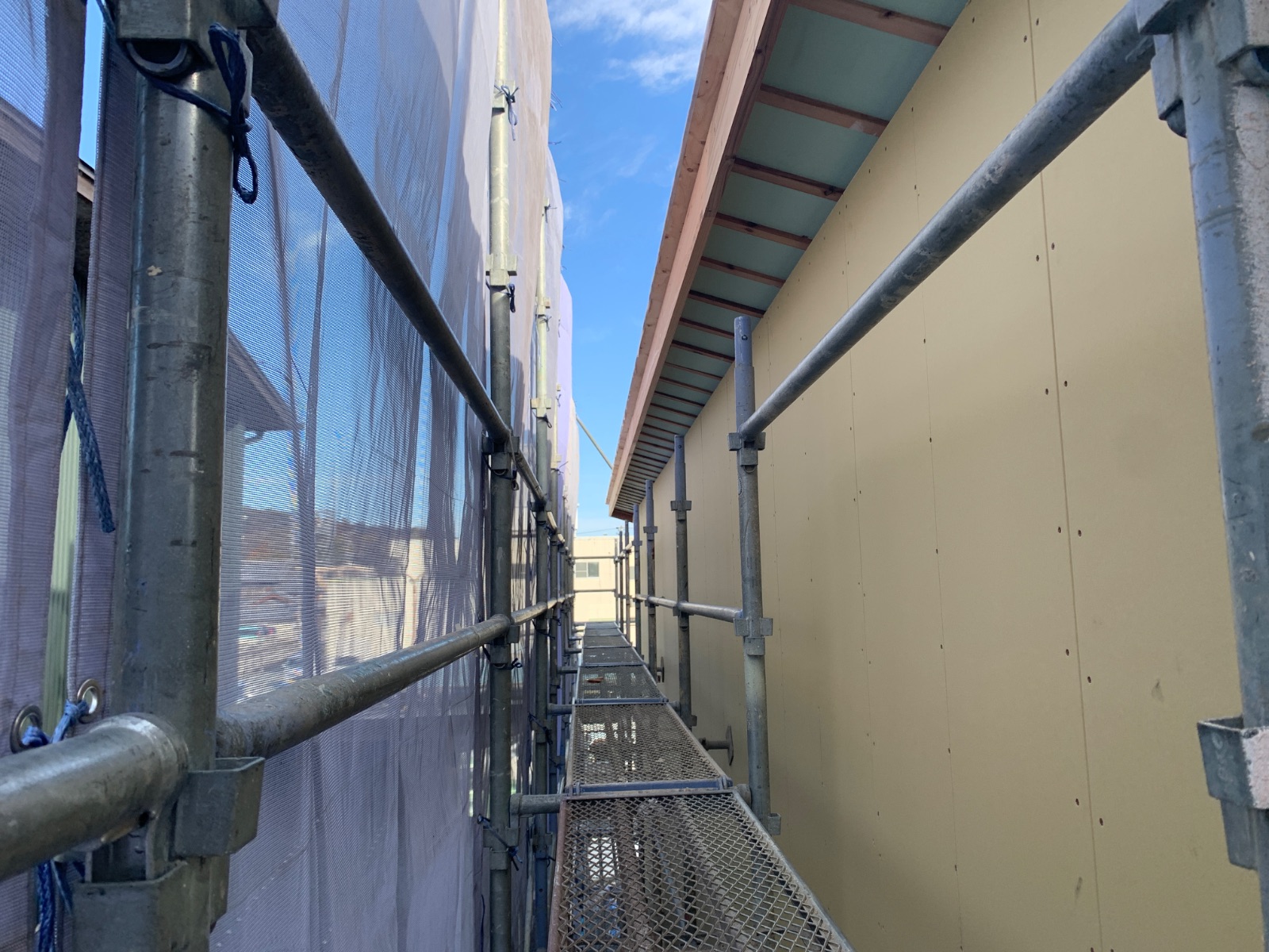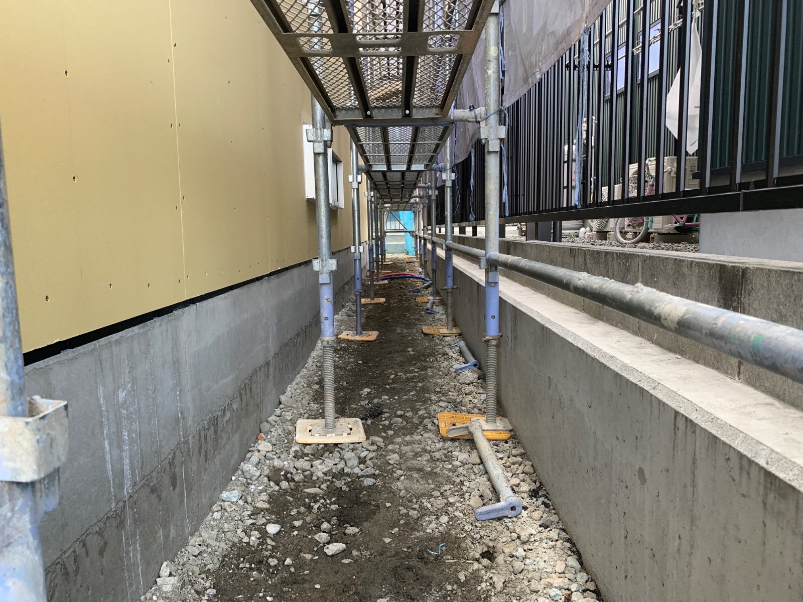 | 2 | 1m以上敷地がある場合は本足場が設置されているか | ||