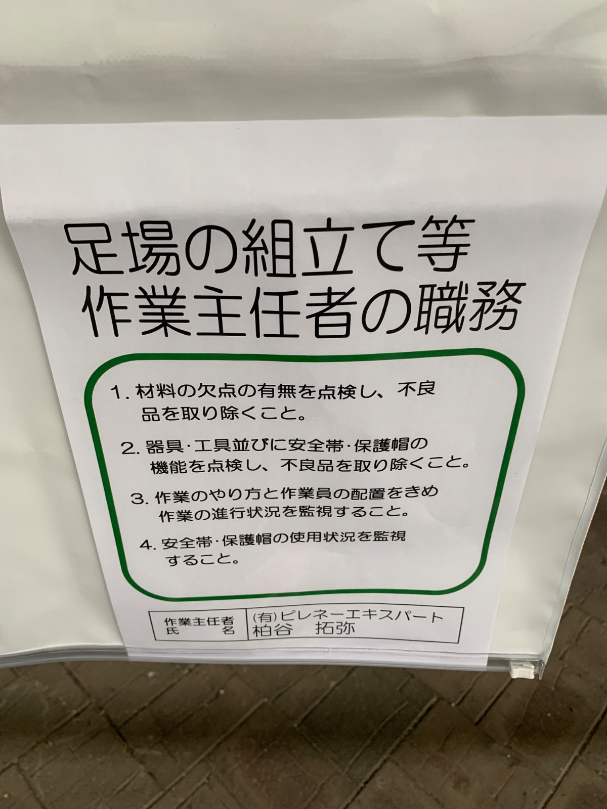 | 3 | 【足場全体】足場組立解体作業主任者名の表示はあるか | ||