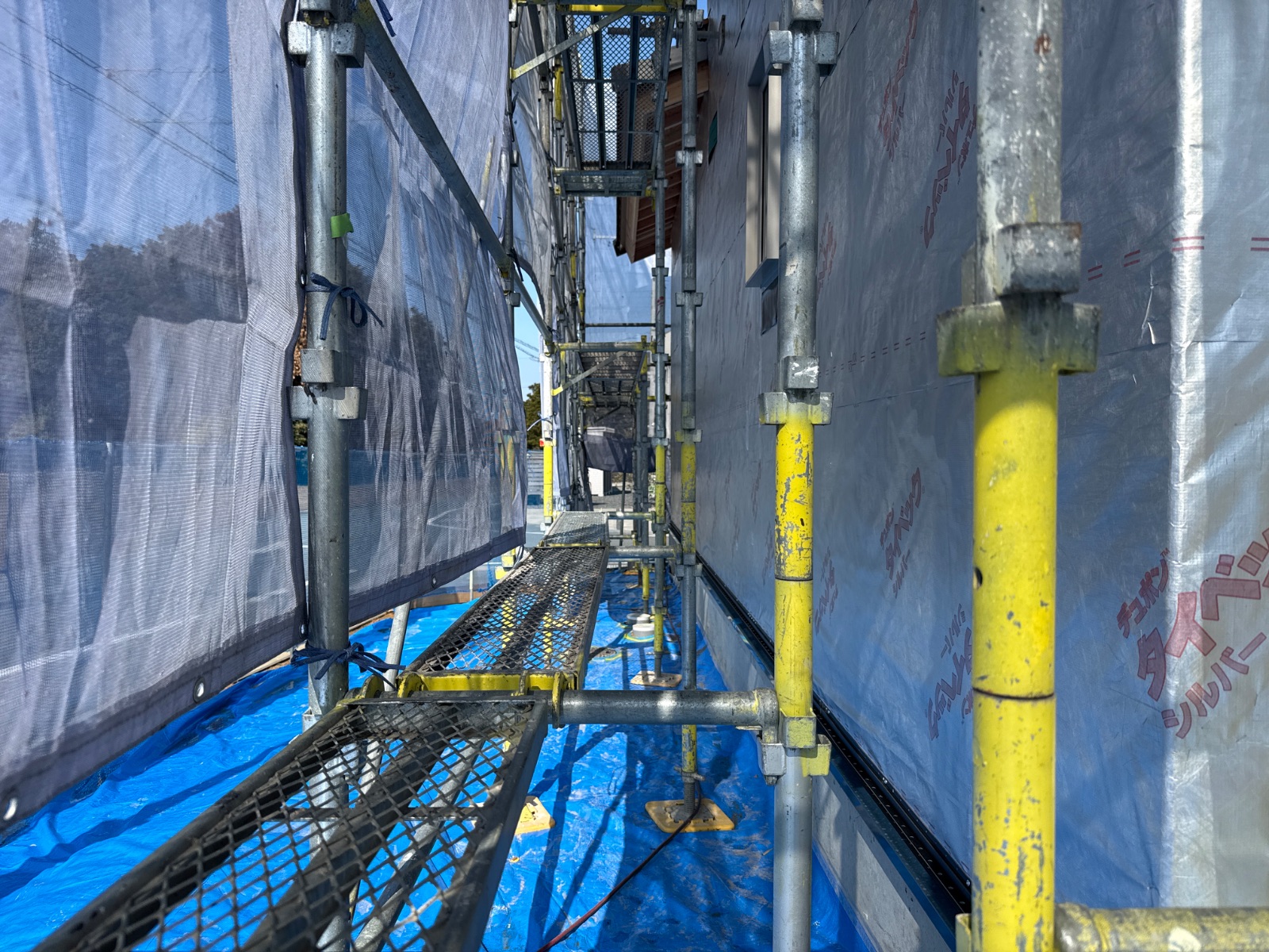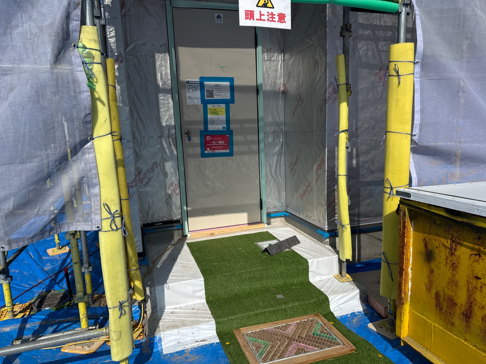 | 足場部材が一部外されていました。作業中だったので、作業終了後に復旧をお願いしてきました。 他、問題ありませんでした。 |