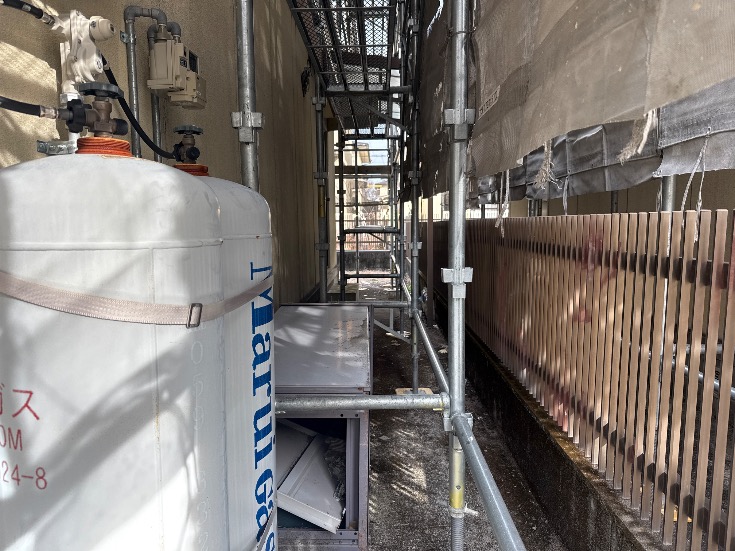 | 2 | 1m以上敷地がある場合は本足場が設置されているか | ||