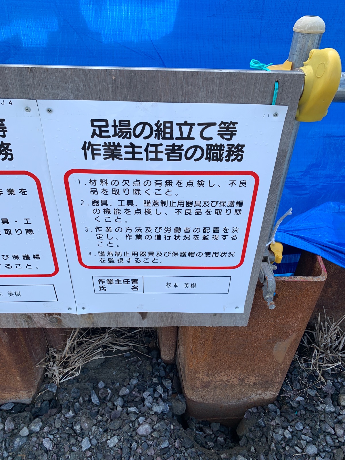 | 3 | 【足場全体】足場組立解体作業主任者名の表示はあるか | ||