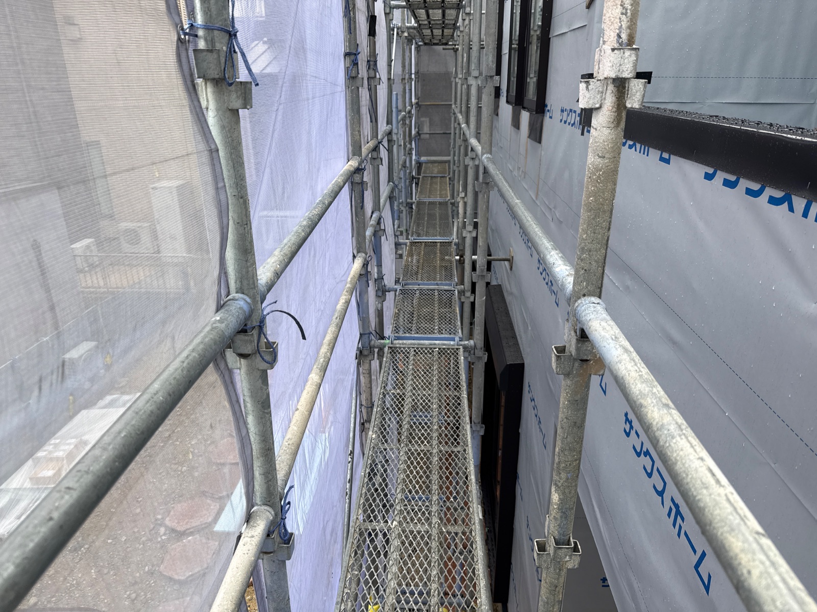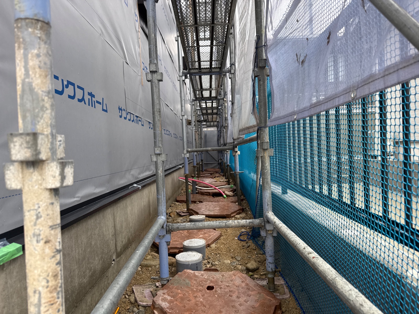 | 2 | 1m以上敷地がある場合は本足場が設置されているか | ||