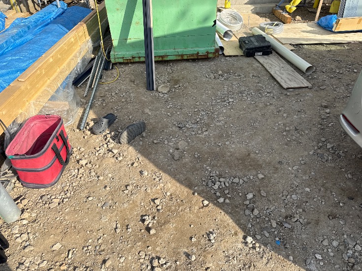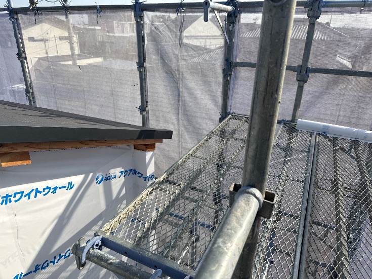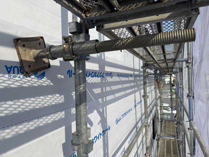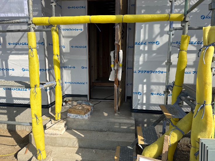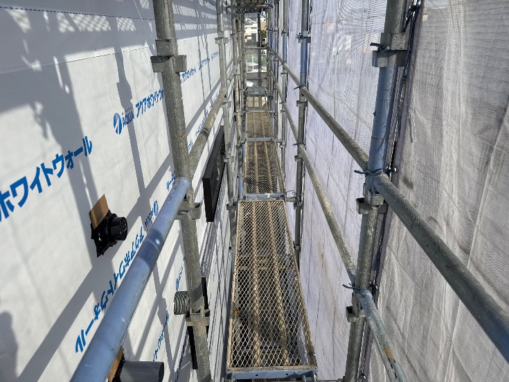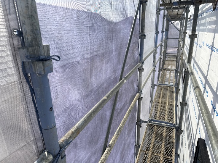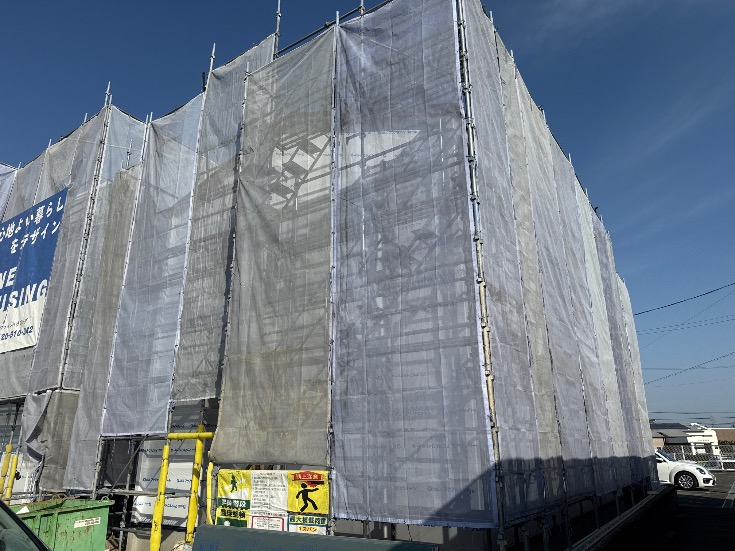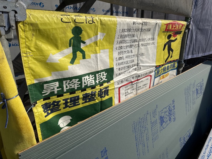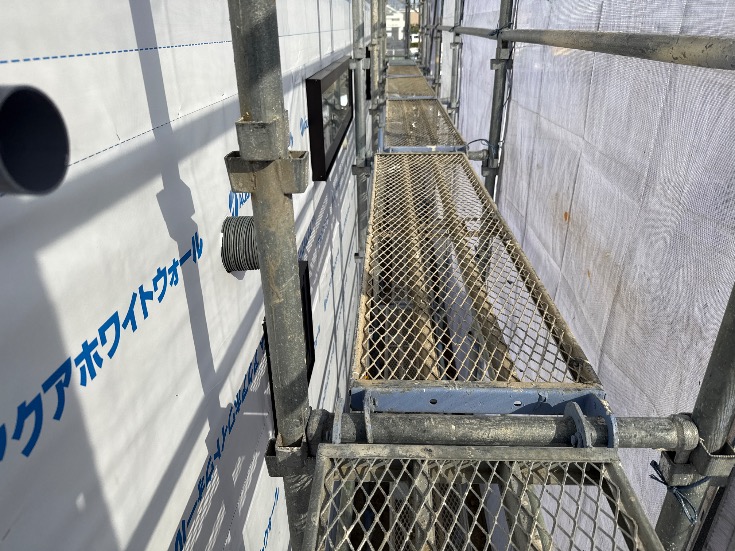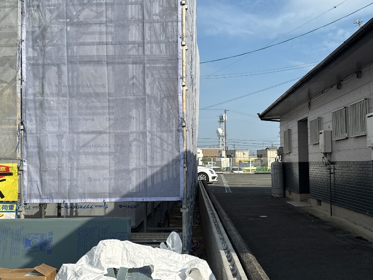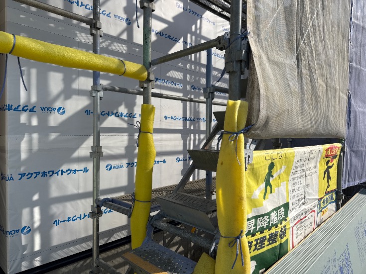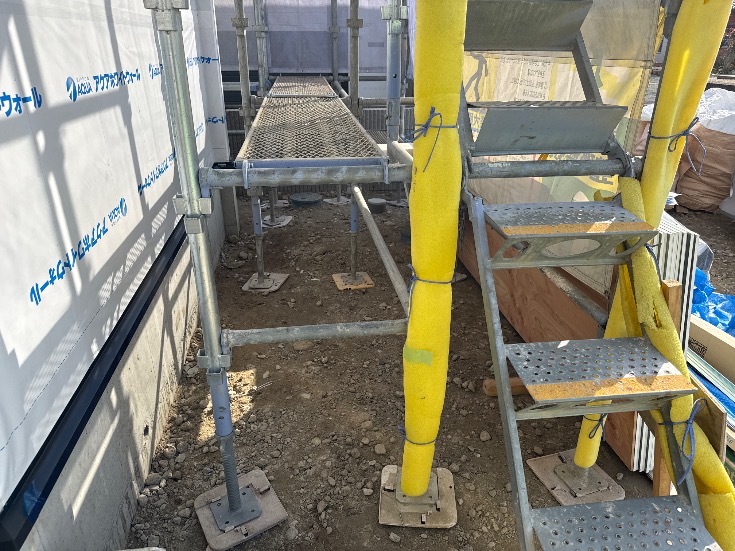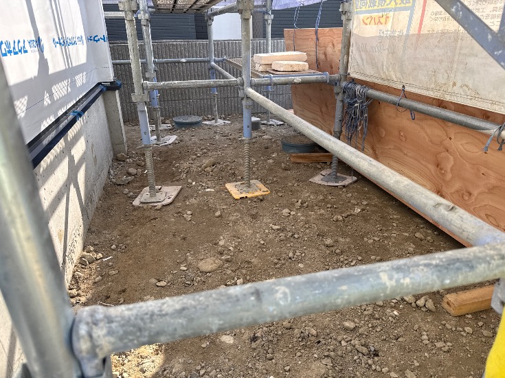 | 足場部材が一部外されています。作業終了後に復旧をお願い致します。 イメージシートは隣の1号地に増設済みです。 |