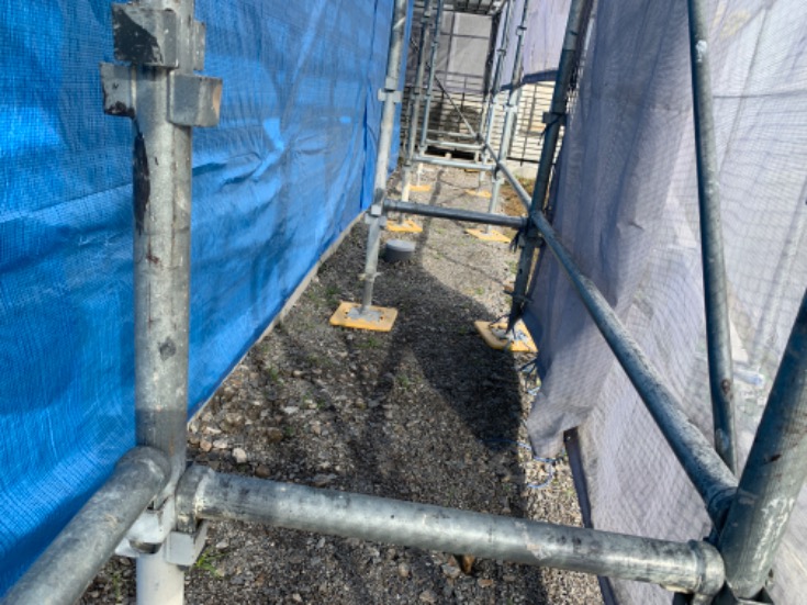| 2 | 1m以上敷地がある場合は本足場が設置されているか | ||