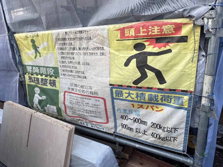 | 足場部材が一部外されています。作業終了後に復旧をお願いいたします。 |