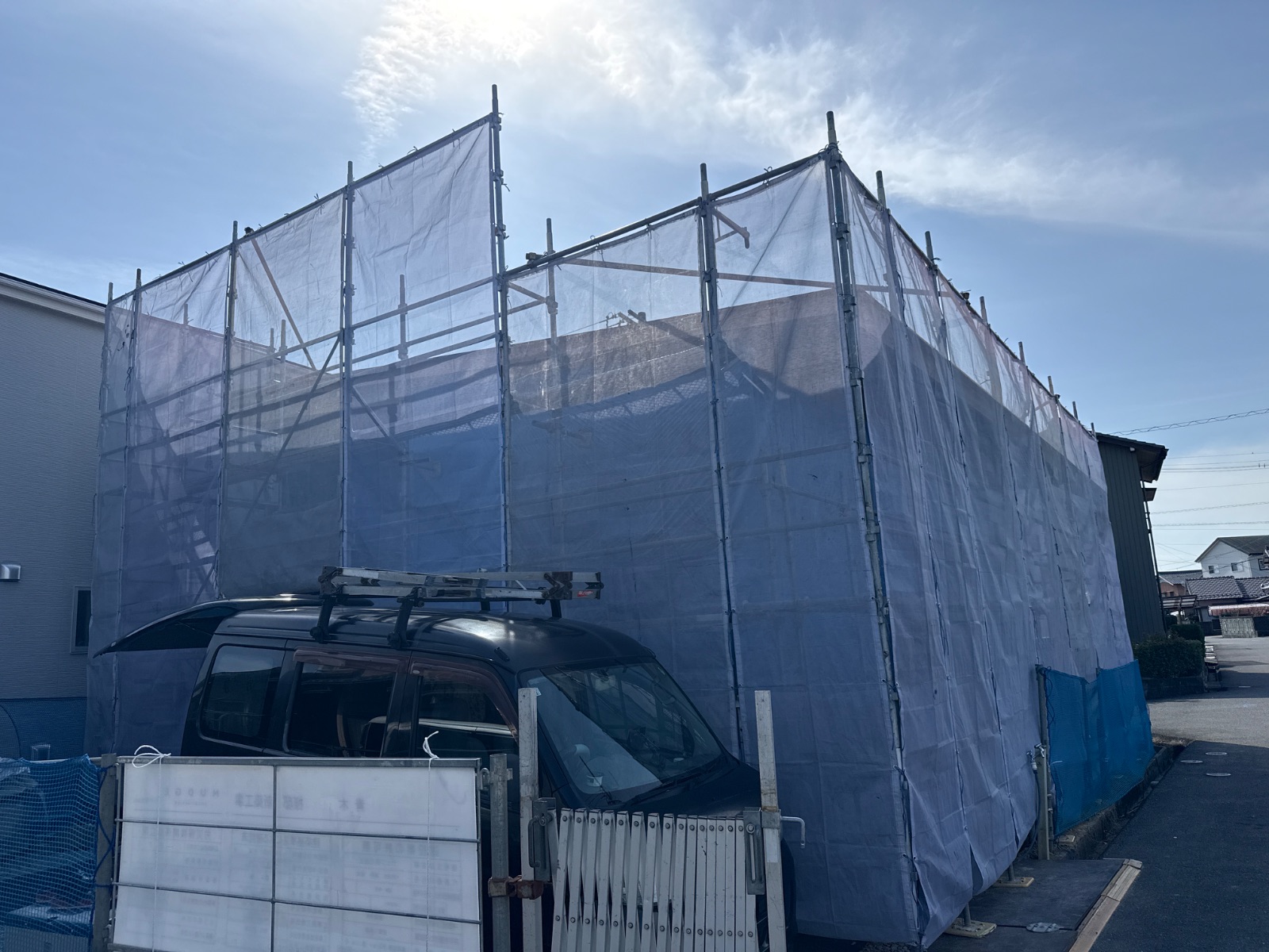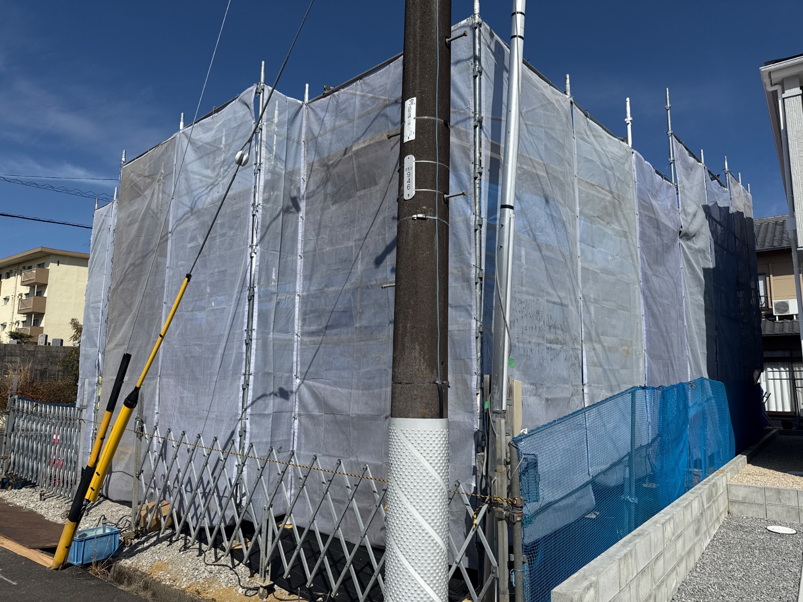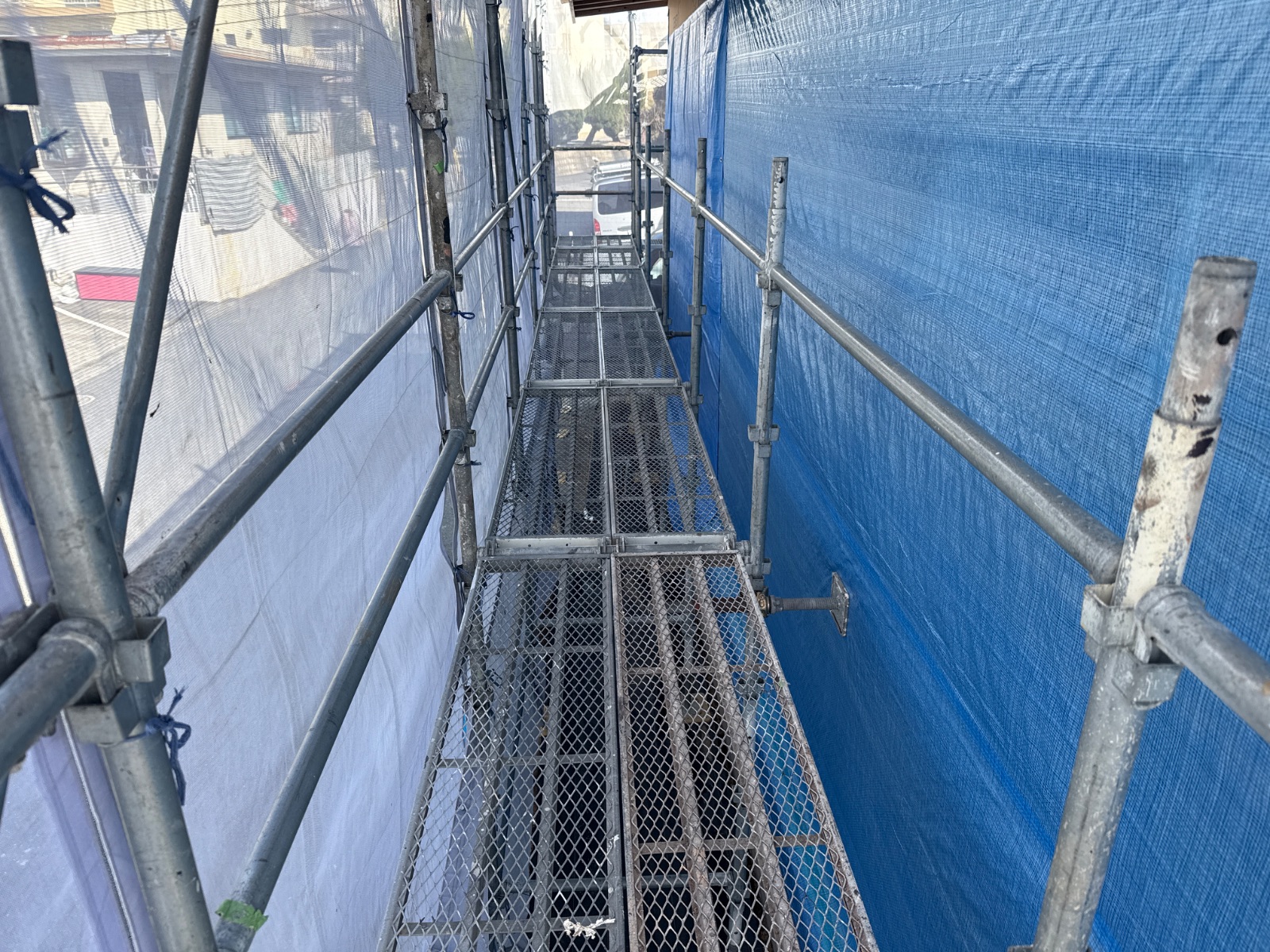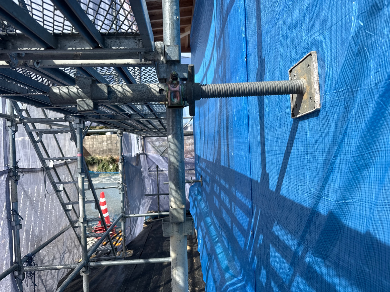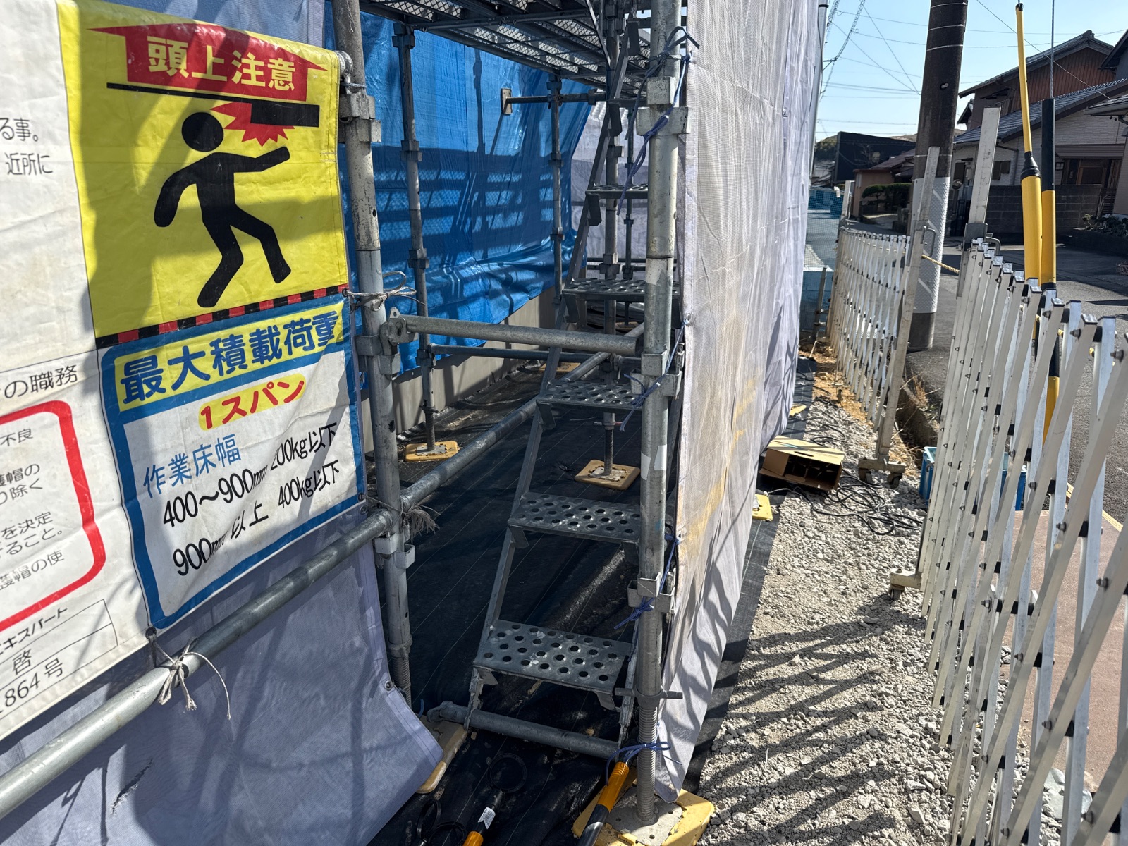 | 2 | 1m以上敷地がある場合は本足場が設置されているか | ||