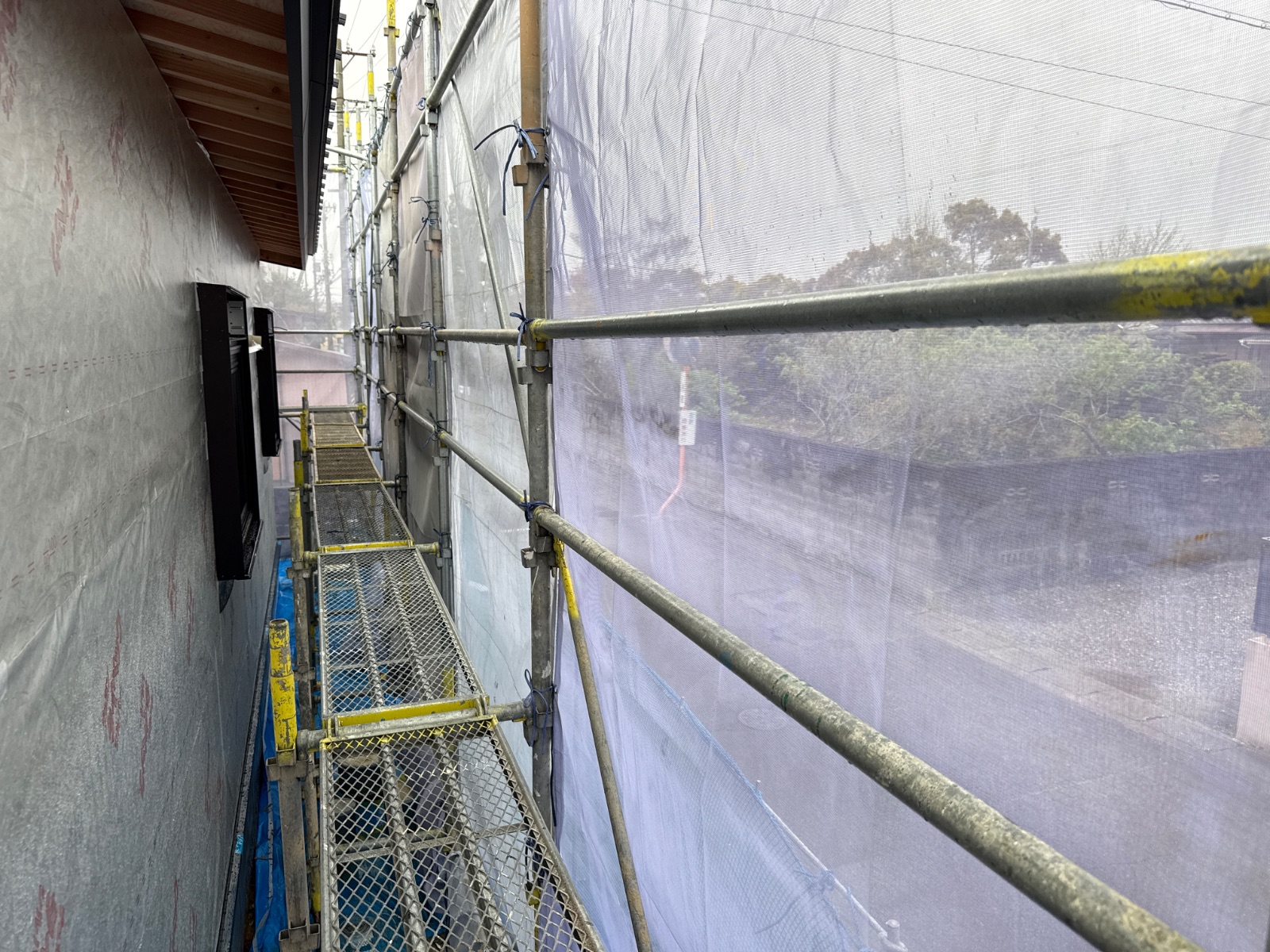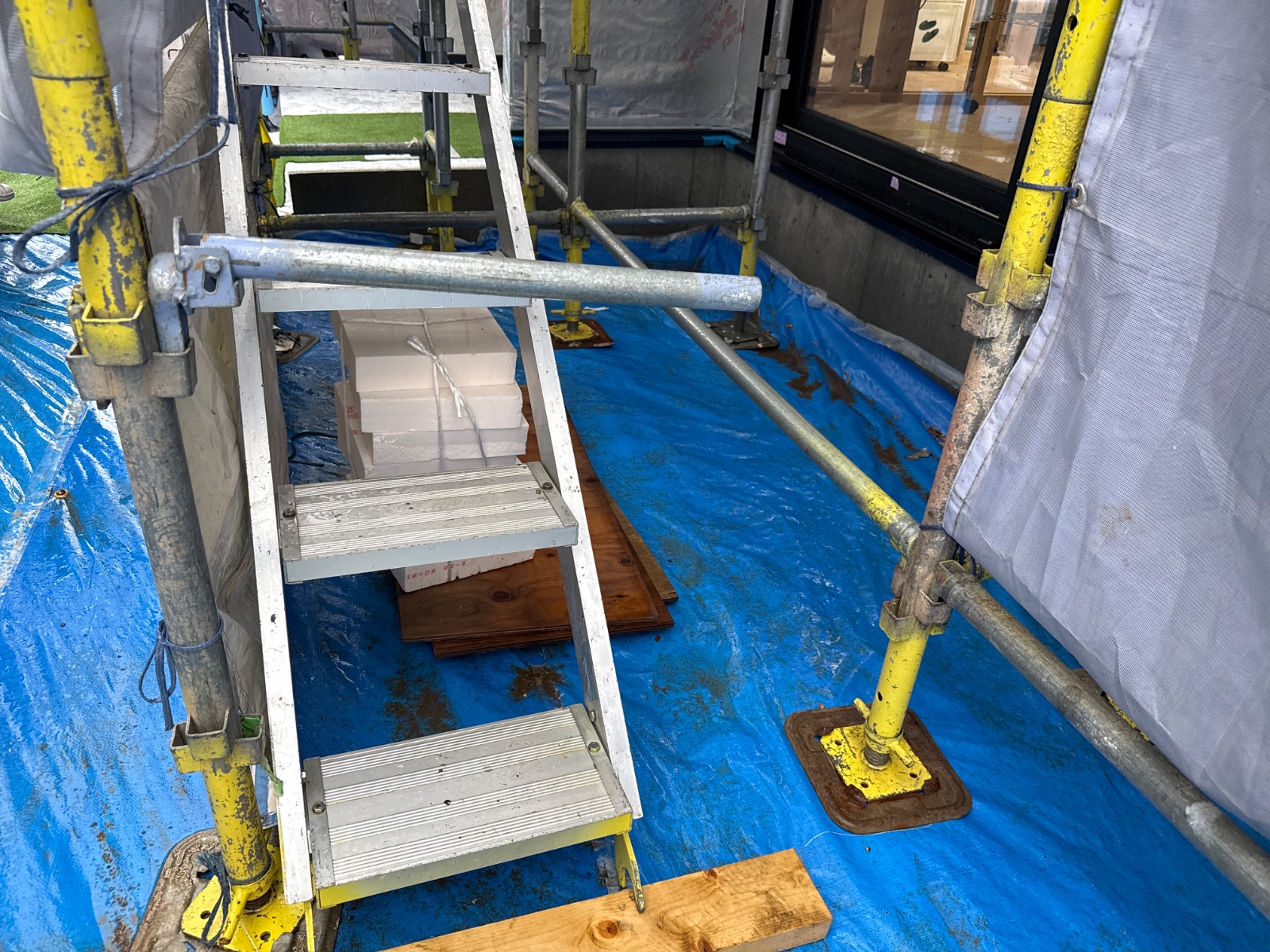 | 2 | 1m以上敷地がある場合は本足場が設置されているか | ||