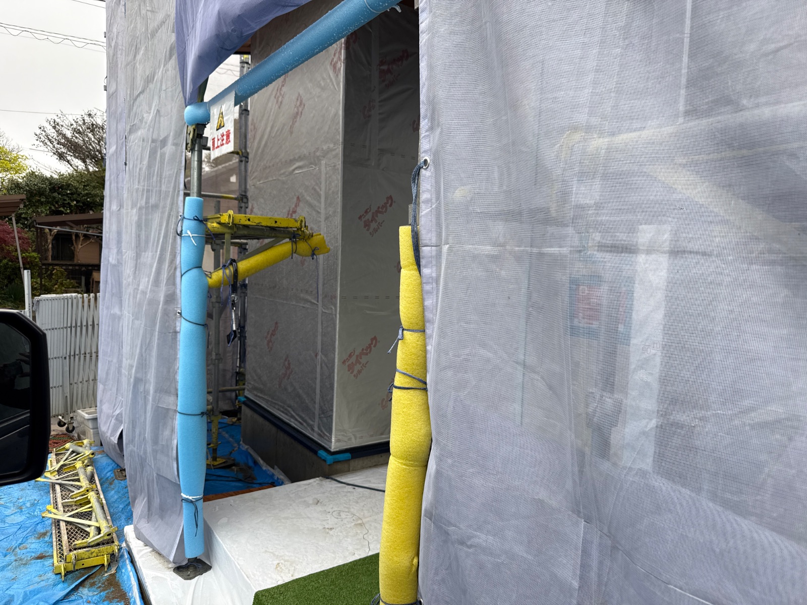 | 15 | 下屋上(ガルバの場合)スタイロを用いて養生が行われているか | ||