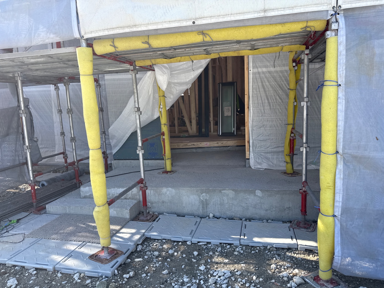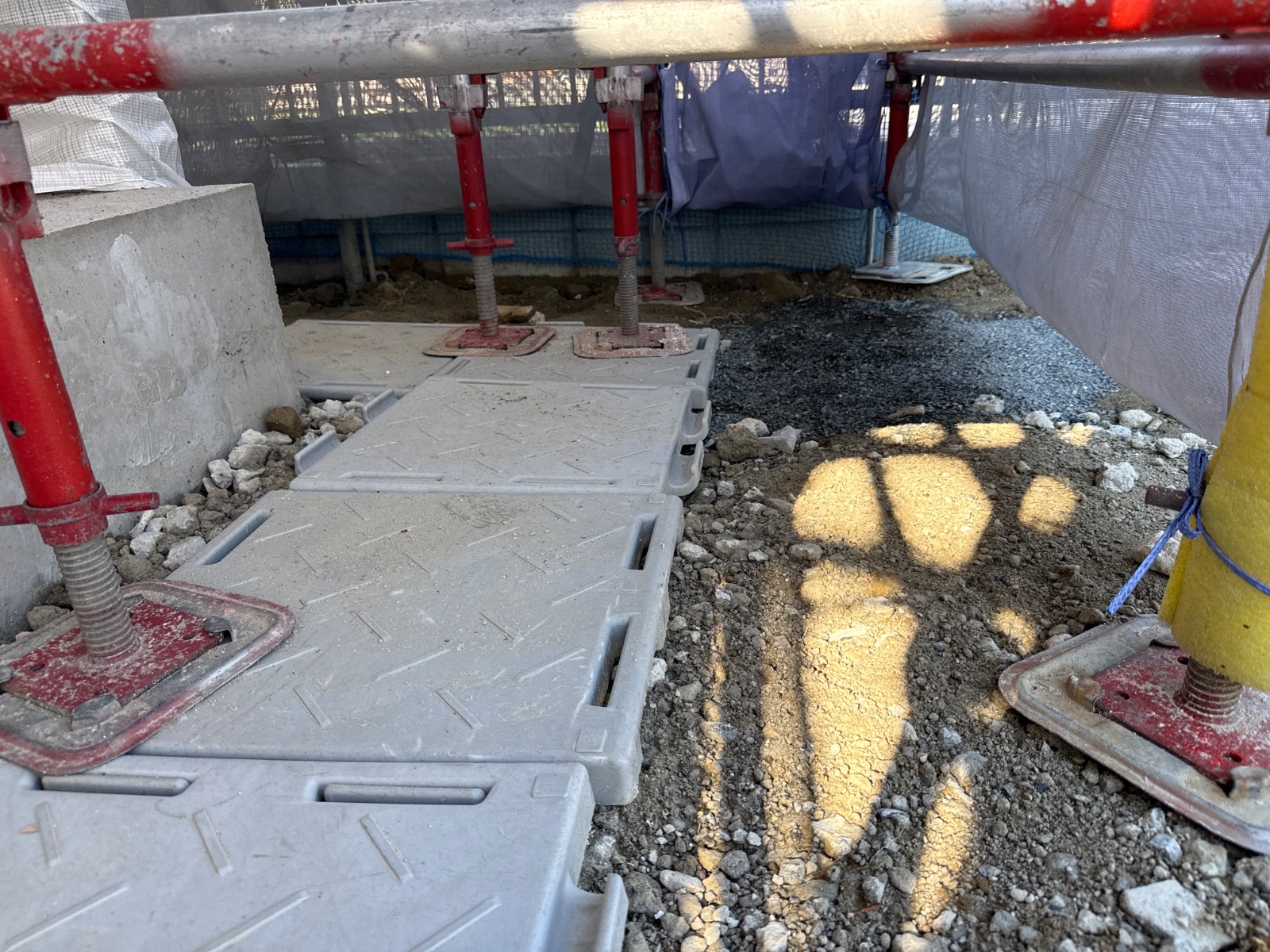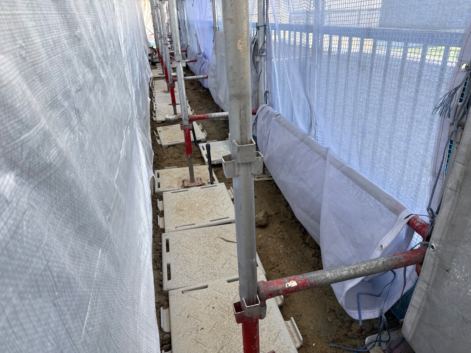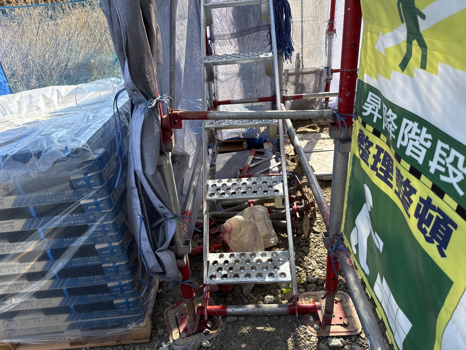 | 足場部材が一部外されています。作業終了後に復旧をお願い致します。 |