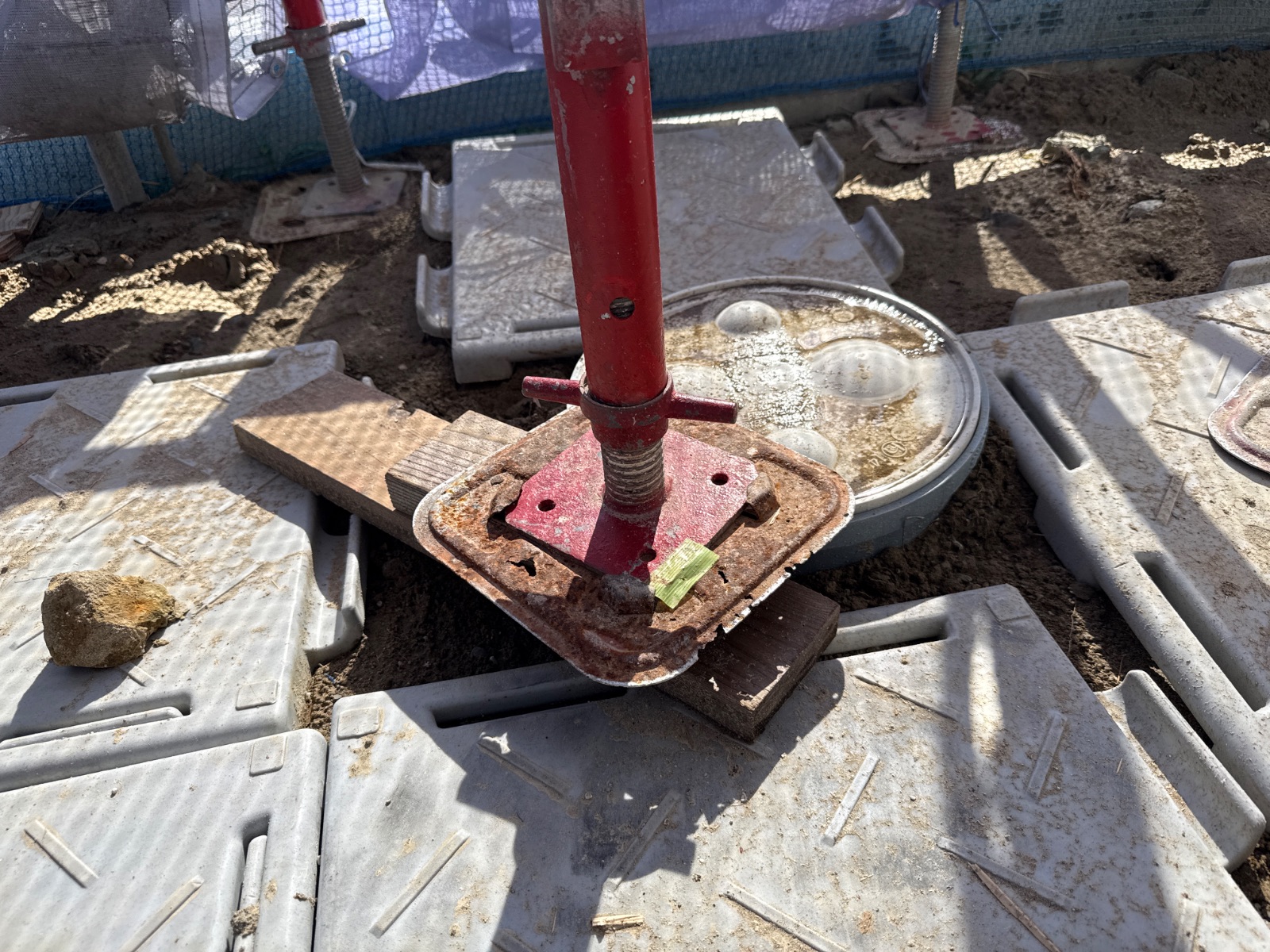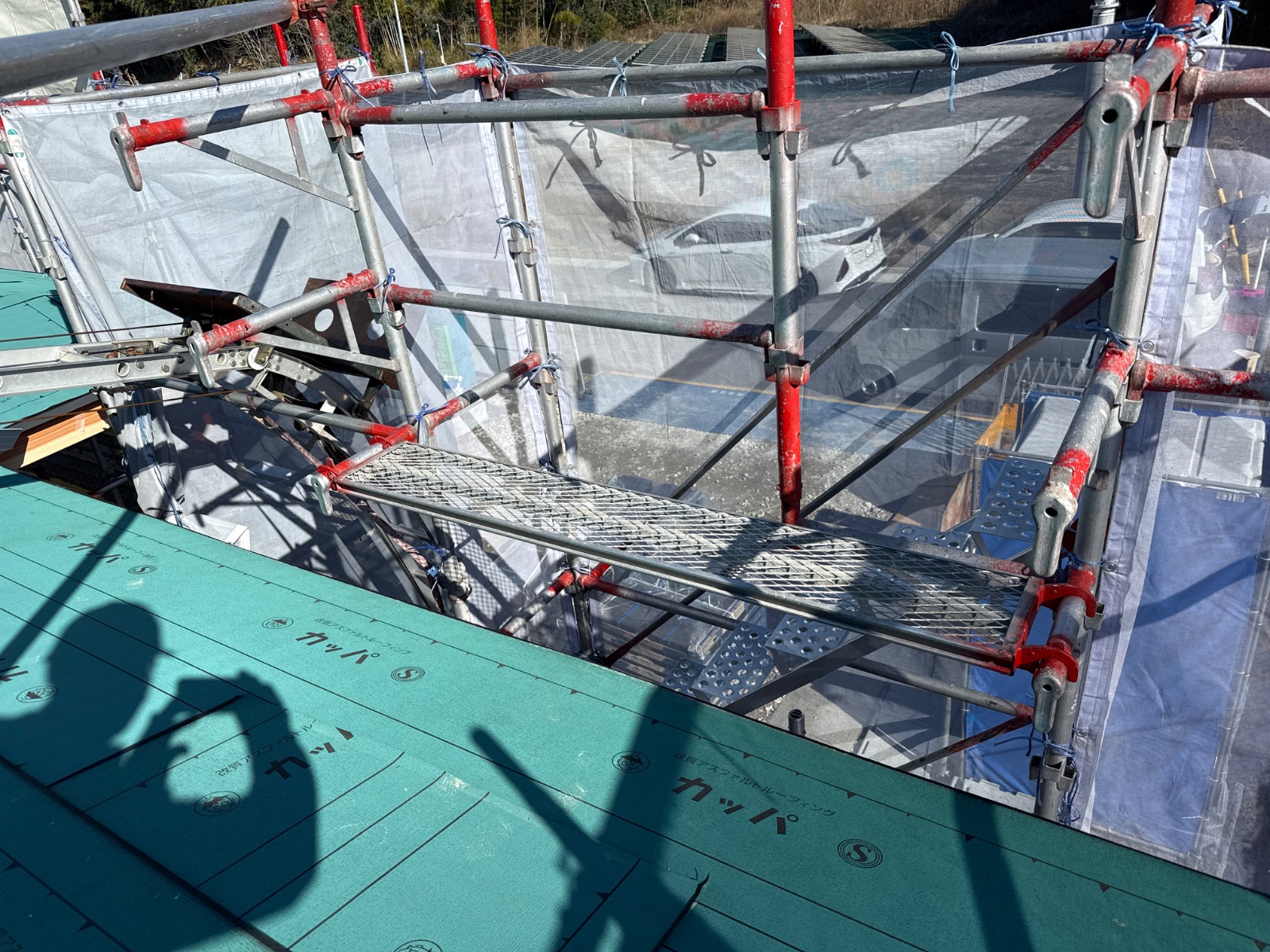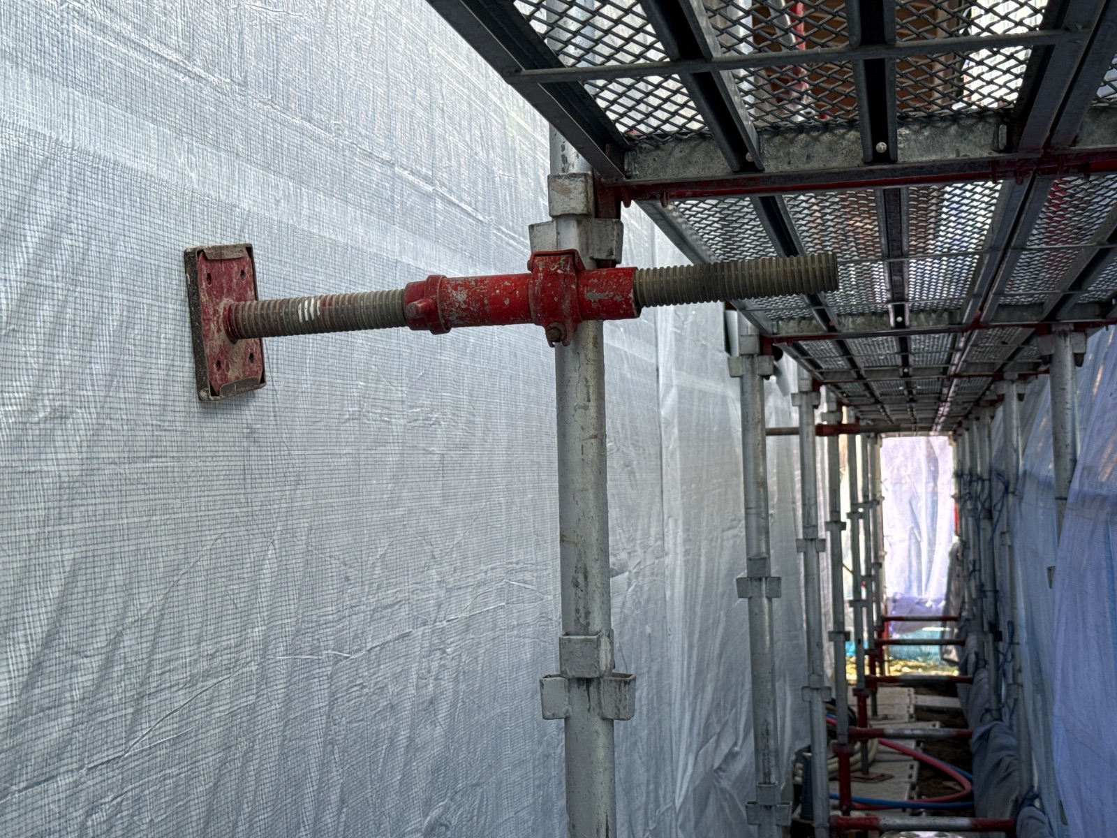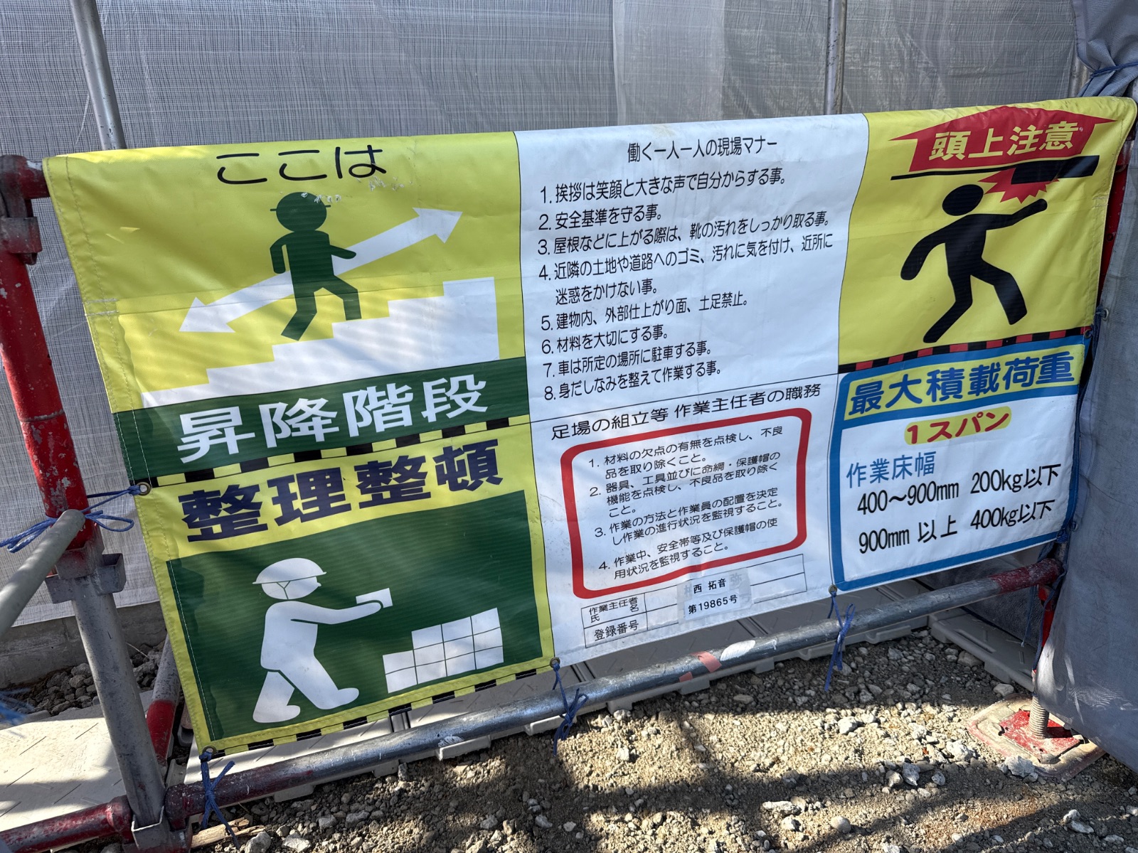| 足場部材が一部外されています。作業終了後に復旧をお願い致します。 |