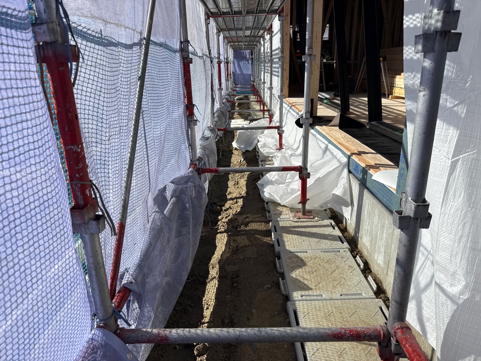 | 2 | 1m以上敷地がある場合は本足場が設置されているか | ||