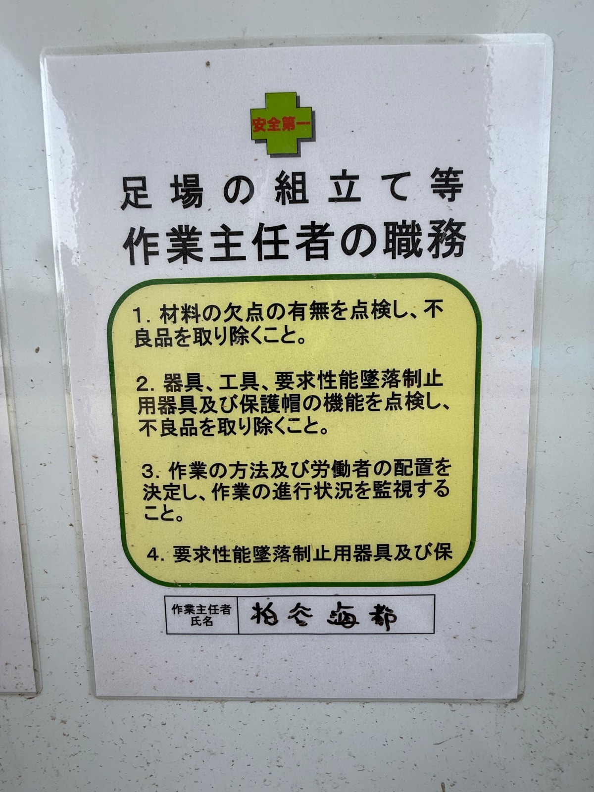 | 3 | 【足場全体】足場組立解体作業主任者名の表示はあるか | ||