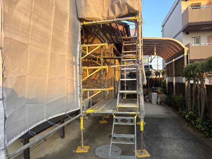 | 2 | 1m以上敷地がある場合は本足場が設置されているか | ||