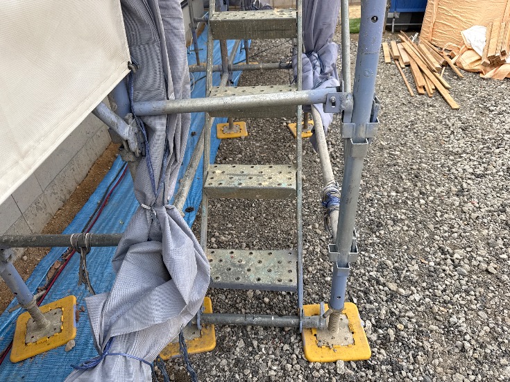 | 足場部材が一部外されています。作業終了後に復旧、お願い致します。 |
